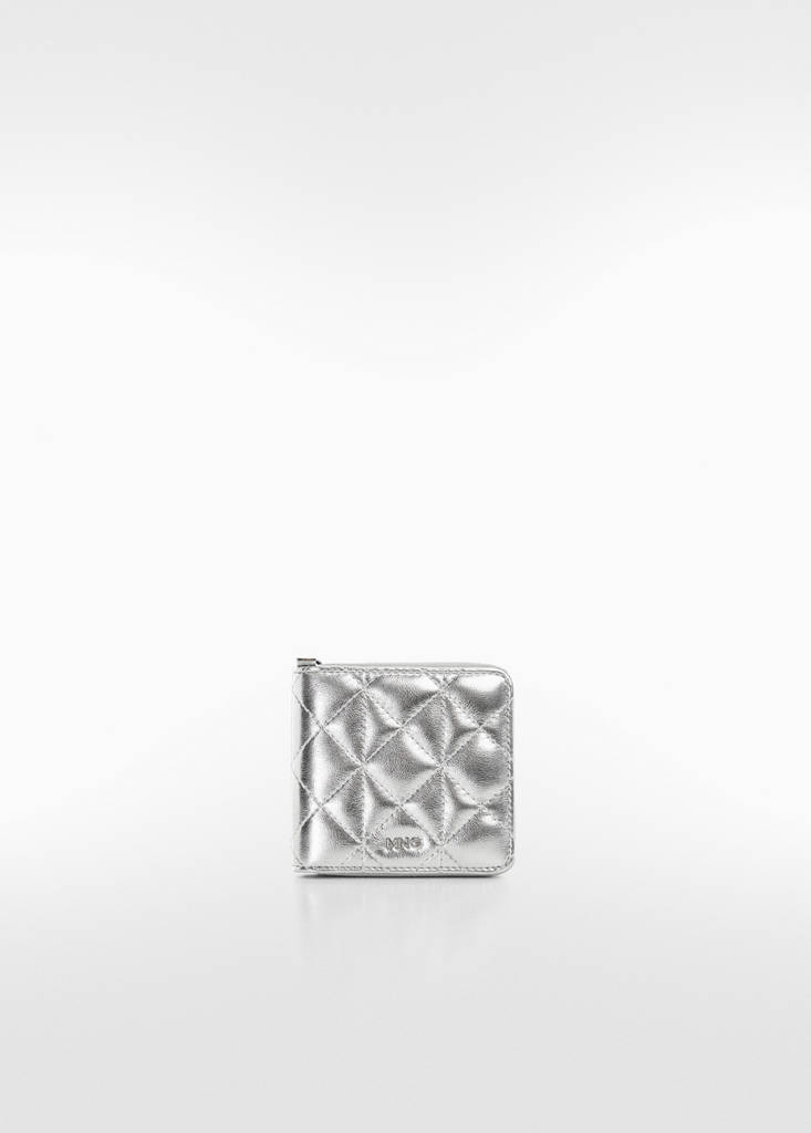 Petite taille. Design matelassé. Finition métallisée. Fermeture Éclair. Sac intérieur. Plusieurs inserts à cartes. Logo en relief. Doublure