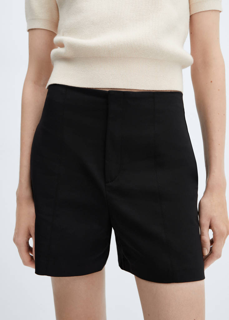 Tissu en mélange de coton. Coupe droite. Coupe courte. Taille haute. Deux poches latérales. Fermeture Éclair avec agrafe et bouton dissimulés. Looks de bureau. Deux poches latérales passepoilées. Deux poches passepoilées à l'arrière. Fermeture Éclair avec agrafe. Doublure intérieure