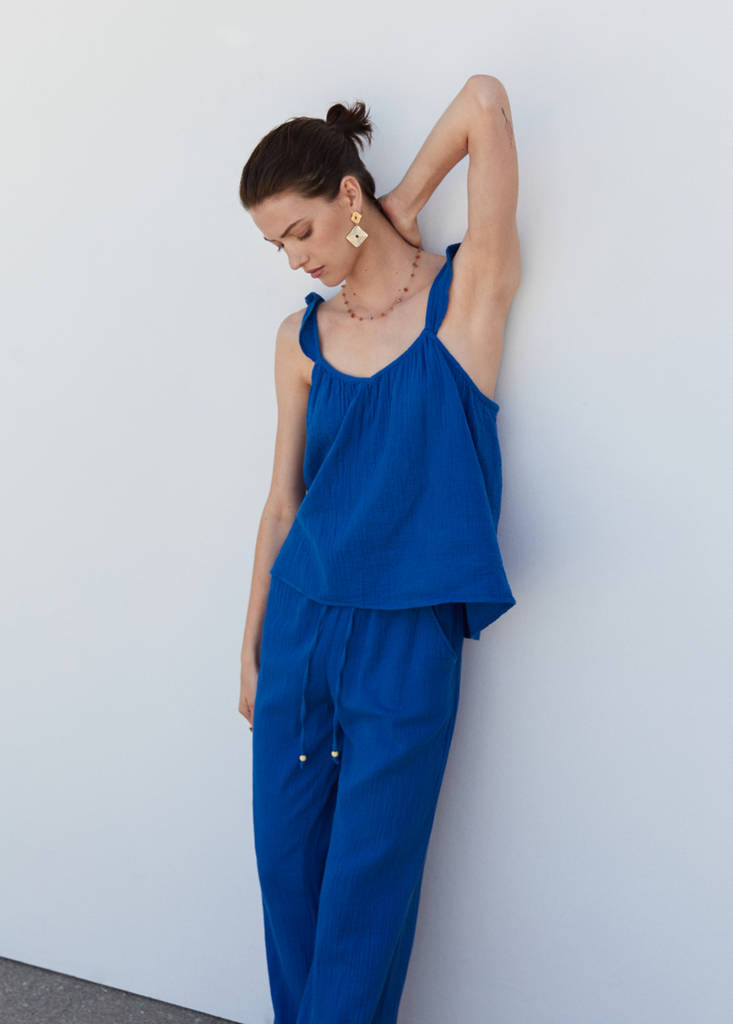 Top bretelles volantPrix initial barré [22,99 € ]22,99 €Prix actuel [15,99 € ]15,99 €-30 %Choisissez une couleurBleuLe mannequin porte la taille S et mesure 176cm.Choisissez votre tailleXXSNon disponible. Je le veux !XSNon disponible. Je le veux !SNon disponible. Je le veux !MNon disponible. Je le veux !LNon disponible. Je le veux !XLNon disponible. Je le veux !XXLNon disponible. Je le veux !Alertez-moi. Tissu en bambula. Tissu texturé. Coupe droite. Col échancré. Bretelles à volant. Sans fermeture. Total look. Tissu 100 % cotonDétails, composition et entretienDisponibilité en boutique