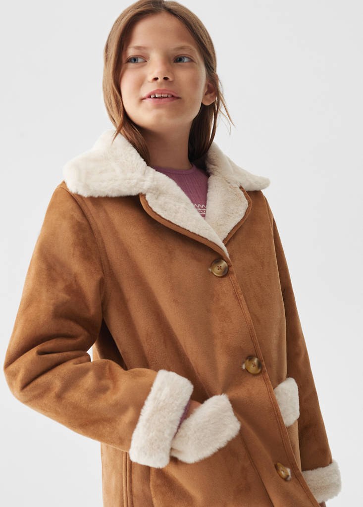 Tissu suédine. Intérieur en imitation fourrure. Coupe regular. Col à revers. Manche longue. Deux poches plaquées latérales. Ce modèle est également disponible dans la collection Baby Girl. Fermeture avant avec boutons