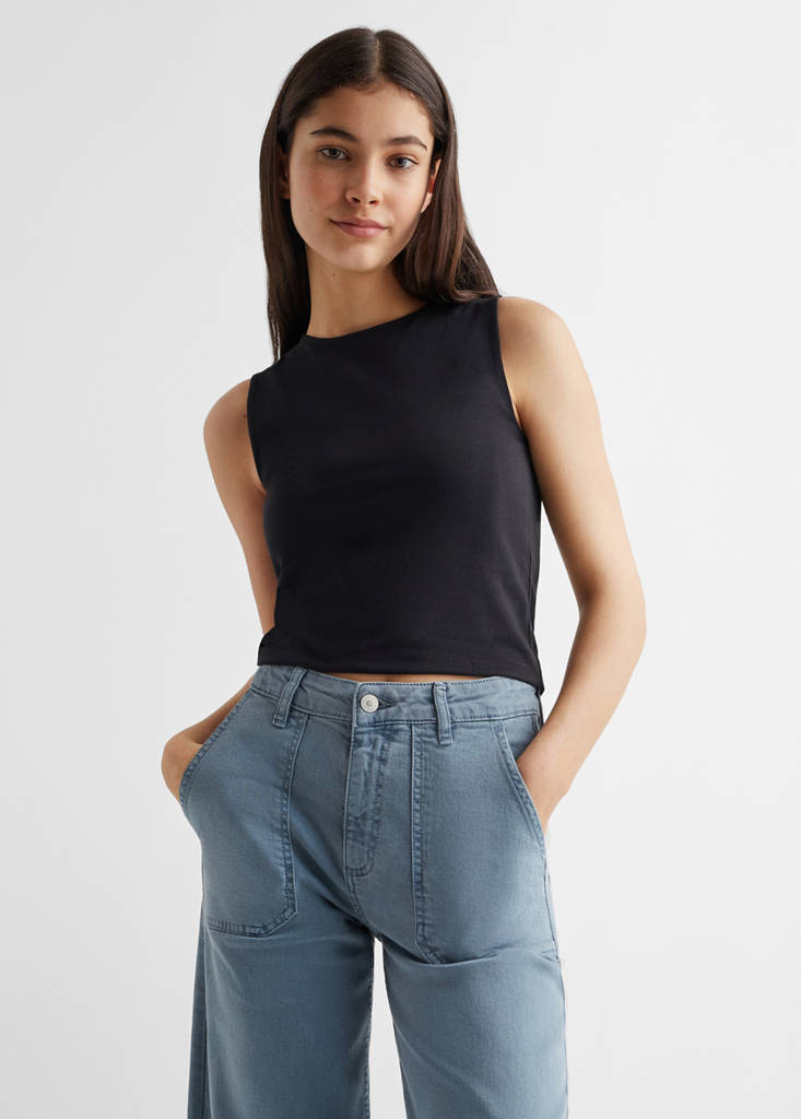 T-shirt bretelles largesPrix initial barré [15,99 € ]15,99 €Prix actuel [11,99 € ]11,99 €-25 %Choisissez une couleurNoirChoisissez votre tailleXXSNon disponible. Je le veux !XSNon disponible. Je le veux !SNon disponible. Je le veux !MNon disponible. Je le veux !LNon disponible. Je le veux !MesuresAlertez-moi. Collection Essentiels. Tissu en coton. Tissu élastique. Coupe cintrée. Coupe standard. Col rond. Bretelles largesDétails, composition et entretienDisponibilité en boutique