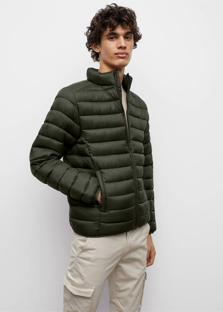 Matelassé. Droit. Coupe courte. Col rond. Rembourré. Manches longues. Deux poches latérales. Fermeture Éclair sur le devant. Le mannequin mesure 188 cm et porte une taille L