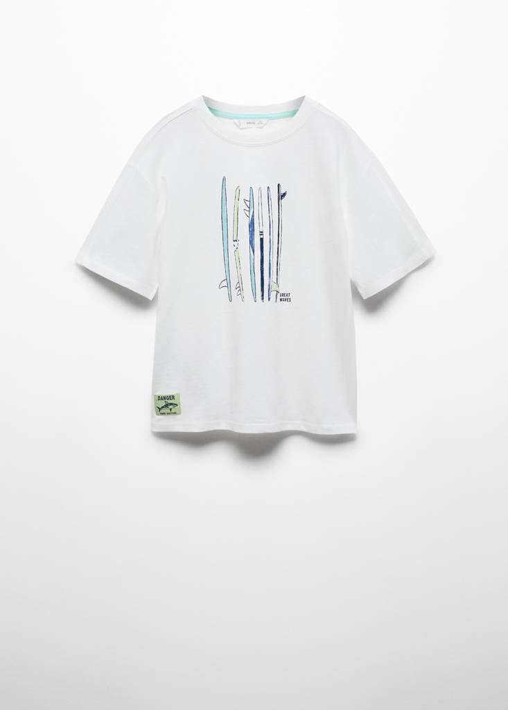 100% coton. Imprimé surf. Coupe droite. Col rond. Manche courte. Summer camp