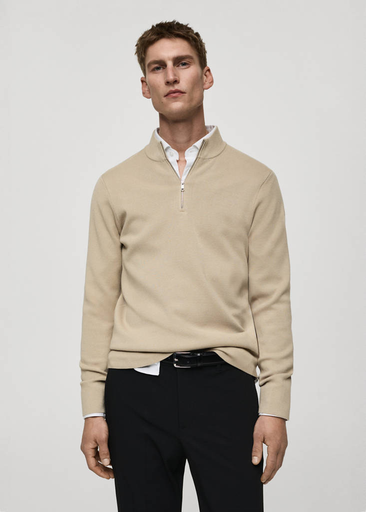 Coupe regular. Tissu en maille fine. Col montant à fermeture Éclair. Col côtelé. Manche longue. Ourlet droit