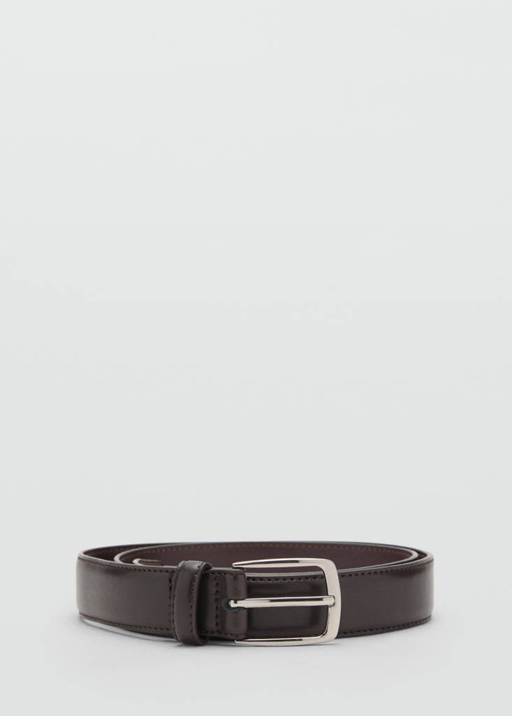 100 % cuir bovin. Boucle métallique. Coupe fine. Perforation gratuite pour l'ajustement de la taille dans les boutiques MANGO