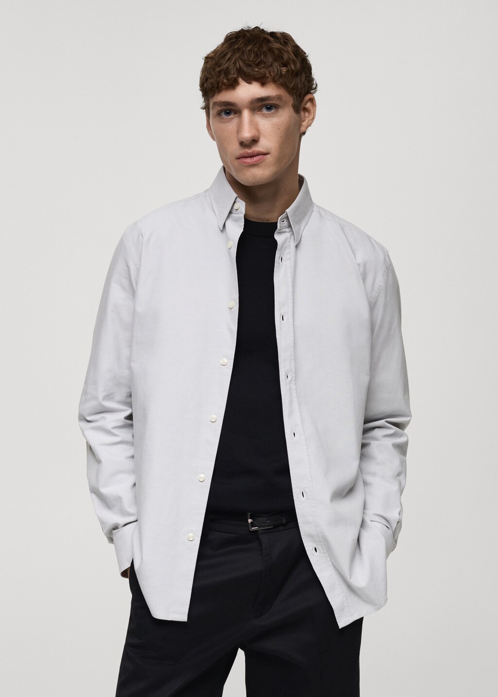 Tissu léger. Coupe régulière. Fermeture à boutons. Tissu 100% coton. Tissu Oxford. Col chemise. Poignets boutonnés. Ourlet arrondi. Fermeture avant. Coupe standard. Manche longue.