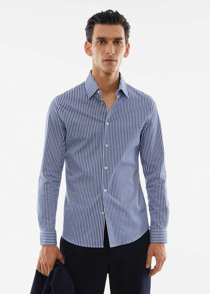 Collection Performance. Slim fit. Tissu de coton et polyester mélangés. Motif à rayures. Col chemise. Comfort Stretch : Tissu élastique pour plus de confort. Repassage facile : tissu facile à repasser. Fermeture avant avec boutons. Confort : Ce vêtement offre une liberté de mouvement totale et retrouve sa forme initiale. Ourlet arrondi. Manches longues boutonnées