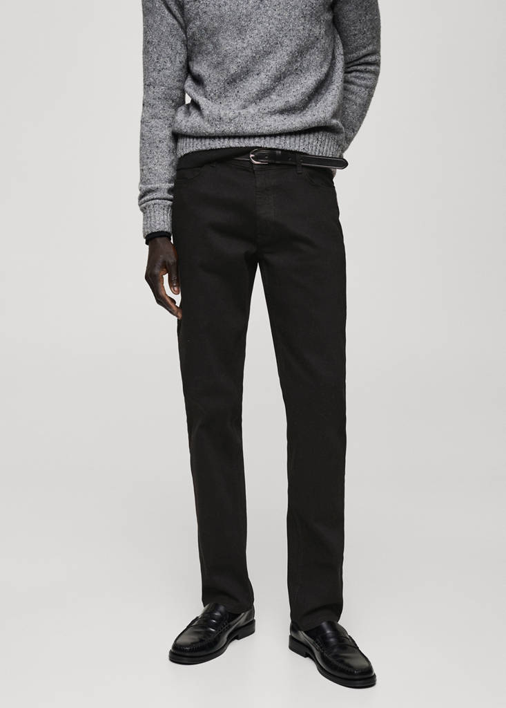 ESSENTIALS: Conçus pour durer. Tissu doux au toucher : finition du tissu qui procure une sensation plus agréable au toucher pour le client. Slim fit. Tissu en coton organique recyclé mélangé. Tissu soft. Style jean. Passants de ceinture. Fermeture éclair et bouton. Deux poches latérales. Poche gousset. Deux poches plaquées à l'arrière. Taille mi-haute