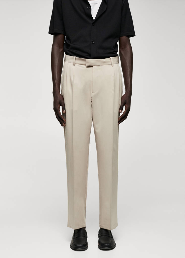 Pantalon costume regular-fit pincesPrix initial barré [59,99 € ]59,99 €Prix actuel [46,99 € ]46,99 €-22 %Choisissez une couleurBeigeLe mannequin porte la taille 42 et mesure 187cm.Choisissez votre taille38Non disponible. Je le veux !40Non disponible. Je le veux !42Non disponible. Je le veux !44Non disponible. Je le veux !46Non disponible. Je le veux !MesuresAlertez-moi. Coupe regular. Double pince à l'avant. Fermeture Éclair avec agrafe et bouton dissimulés. Passants de ceinture. Deux poches avant. Deux poches à rabat à l'arrièreDétails, composition et entretienDisponibilité en boutique