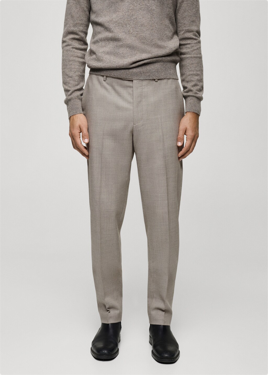 Collection Selection. Tissu 100 % laine vierge. Pli marqué au fer devant et derrière. Fermeture avant à bouton, agrafe et fermeture Éclair. Passants pour ceinture. Deux poches avant. Deux poches passepoilées avec bouton à l'arrière.