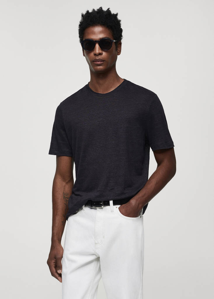 T-shirt slim-fit 100 % linPrix initial barré [29,99 € ]29,99 €Deuxième prix barré [22,99 € ]22,99 €Prix actuel [4,99 € ]4,99 €-83 %Choisissez une couleurBleu marine foncéLe mannequin porte la taille M et mesure 185cm.Choisissez votre tailleXSNon disponible. Je le veux !SNon disponible. Je le veux !MNon disponible. Je le veux !LNon disponible. Je le veux !XLNon disponible. Je le veux !XXLNon disponible. Je le veux !MesuresAlertez-moi. Slim fit. Tissu 100 % lin. Col rond. Manches courtes. Ourlet droitDétails, composition et entretienDisponibilité en boutique