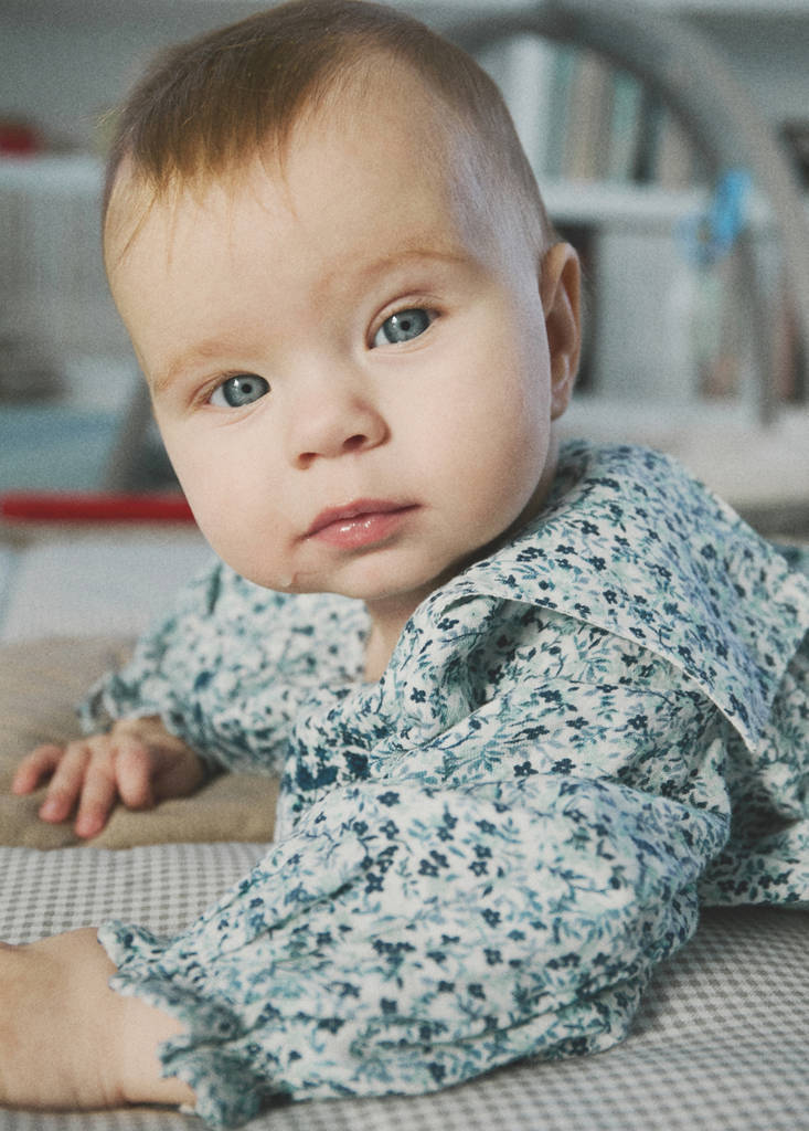 100 % coton. Design fleurs. Col Claudine rond. Broderie florale. Manche longue. Poignets froncés. Détail froncé à l'ourlet