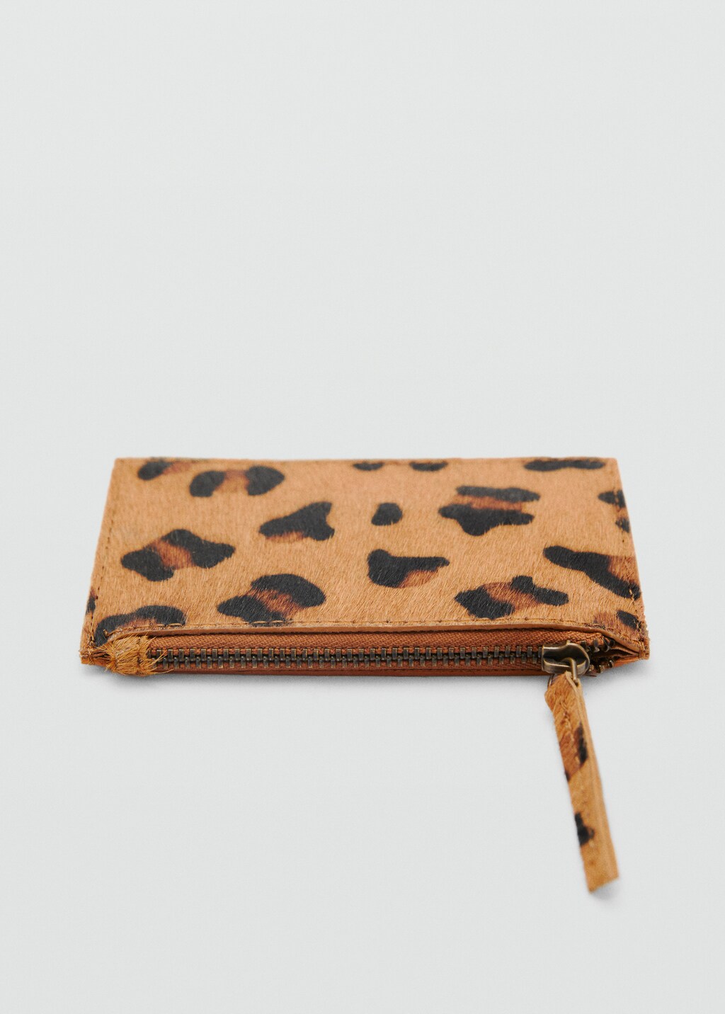 100 % cuir bovin. Tissu en poils. Motif léopard. Design carré. Fermeture éclair.