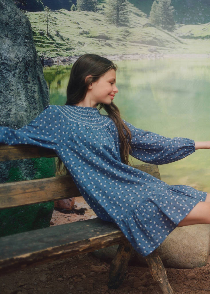 100% Cotton. Flowers print. Round neck. Short design. A-line design. Long sleeves. Ruched details. Button up. Inner lining. This garment is also available in Baby Girl´s collection