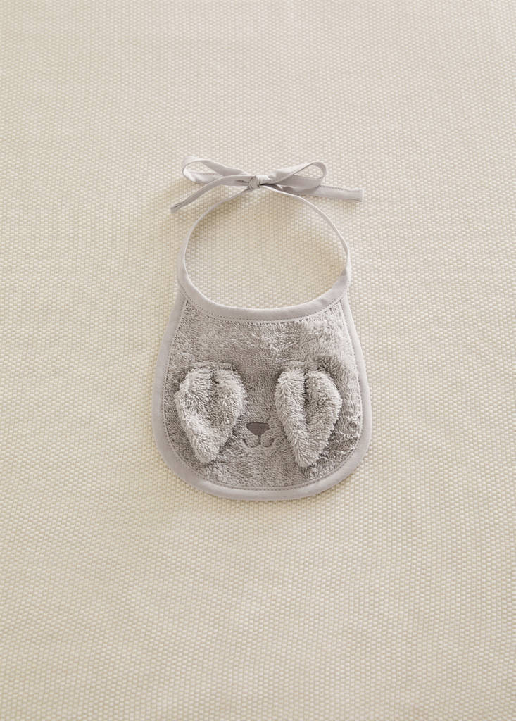Children's bib with earsPrice historyInitial price struck through [€ 13.99 ]€ 13.99Second price struck through [€ 8.99 ]€ 8.99Current price [€ 5.99 ]€ 5.99-57%Select a colourGreySelect your sizeOne sizeAdd100% Cotton. Terrycloth fabric. Closure with loop. Ears detail. Embroidered fabric. Available in different colours15.0x17.0 cmDetails, composition and careStore availability
