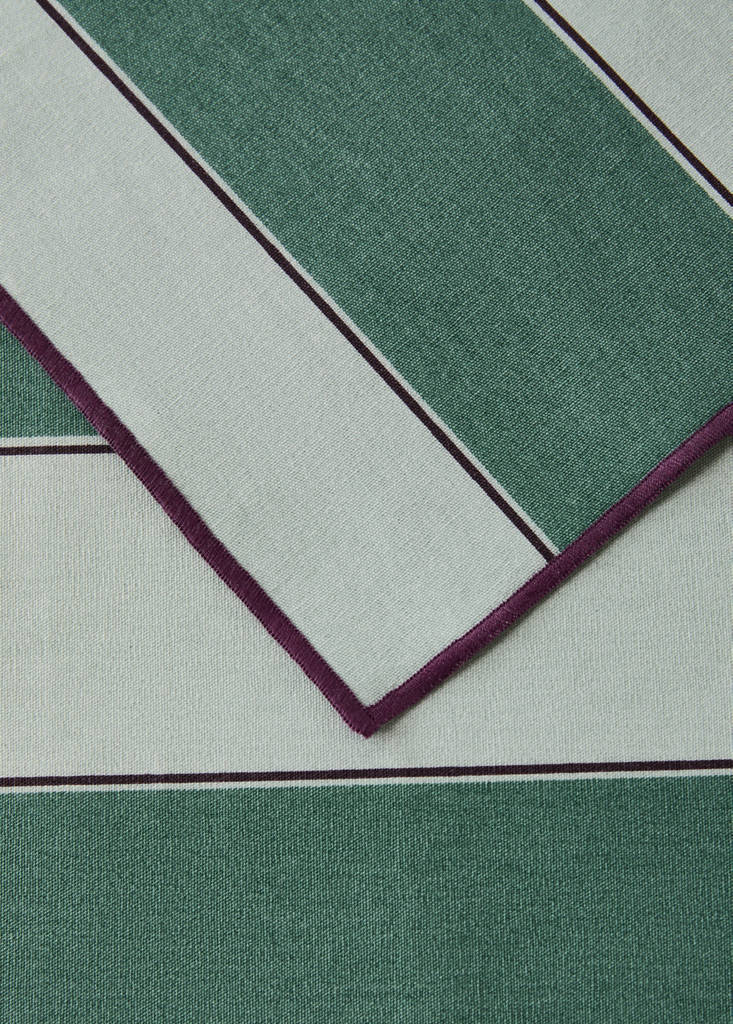 Pack of 2. Size: 35x50cm. 100% cotton, resin-finish, water-resistant and stain-proof placemat, allowing any accidental spill to be cleaned with a damp cloth. Protect your table with style and extend the useful life of the placemat. Two-tone stripe print. Matches with its coordinating tablecloth