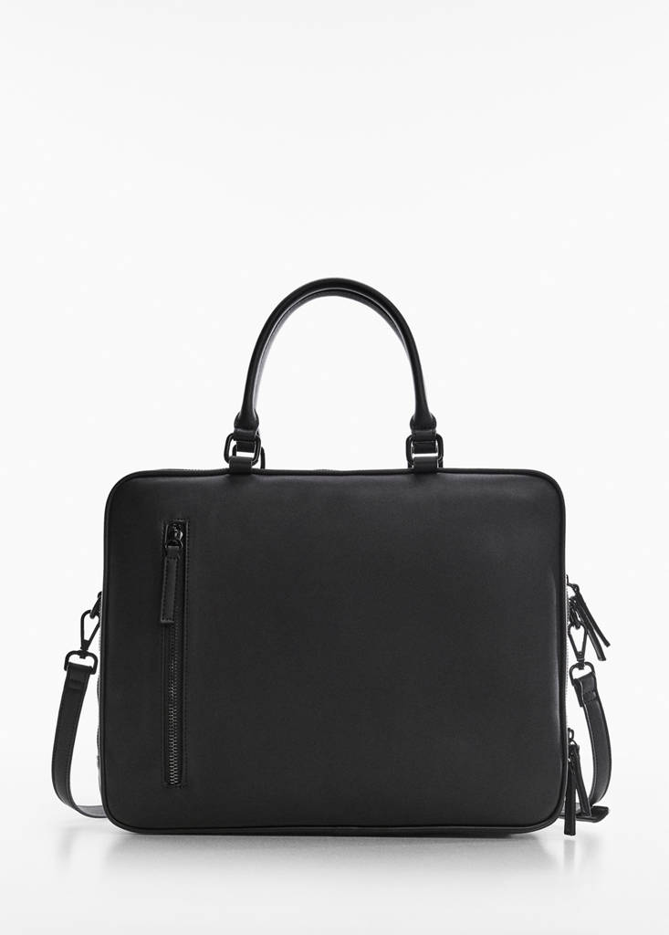 Briefcase. Combined design. Medium. Nylon fabric. Faux leather. Two short handles. Long removable strap. Zipped pocket. Zip fastening. Multiple interior pockets. Laptop pocket