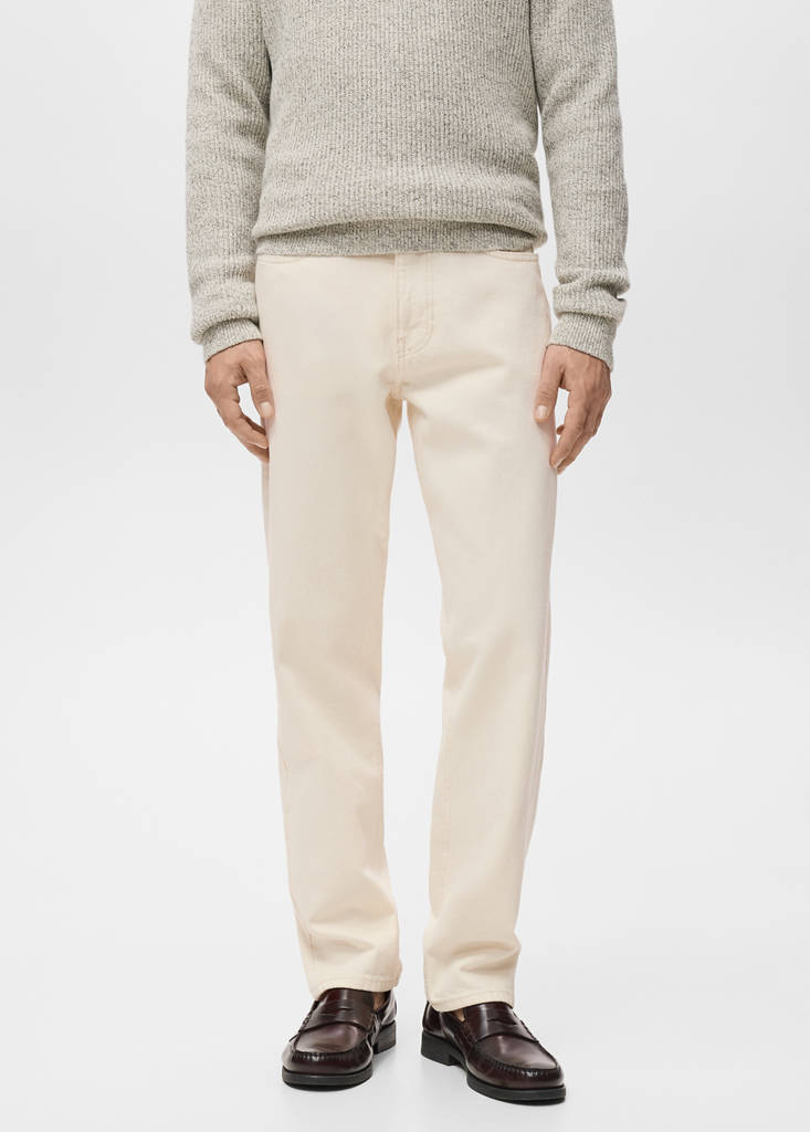 Regular fit. Denim-style cotton fabric. Medium faded wash. Zip and button fastening. Belt loops. Two side pockets. Coin pocket. Two patch pockets at the back