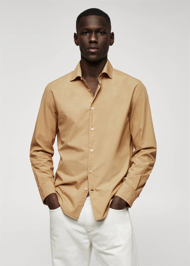 100% cotton shirtPrice historyInitial price struck through [€ 49.99 ]€ 49.99Current price [€ 38.99 ]€ 38.99-22%Select a colourMedium BrownSelect your sizeSNot available. I want it!MNot available. I want it!LNot available. I want it!XLNot available. I want it!DimensionsNotify me100% Cotton. Slim fit. Light fabric. Classic collar. Long sleeve. Button fastening on the front sectionDetails, composition and careStore availability