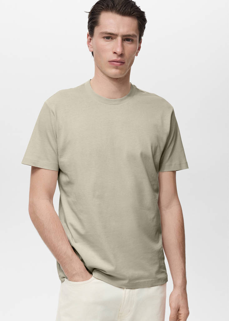 100% cotton slim-fit t-shirtPrice historyInitial price struck through [€ 13.99 ]€ 13.99Second price struck through [€ 10.99 ]€ 10.99Current price [€ 8.99 ]€ 8.99-36%Select a colourSandThe model is wearing size L and is 188cm tall.Select your sizeXSSMLLast few items!XLXXLLast few items!MeasurementsAddSlim fit. 100% cotton fabric. Round neck. Short sleeves. Straight hemDetails, composition and careStore availability