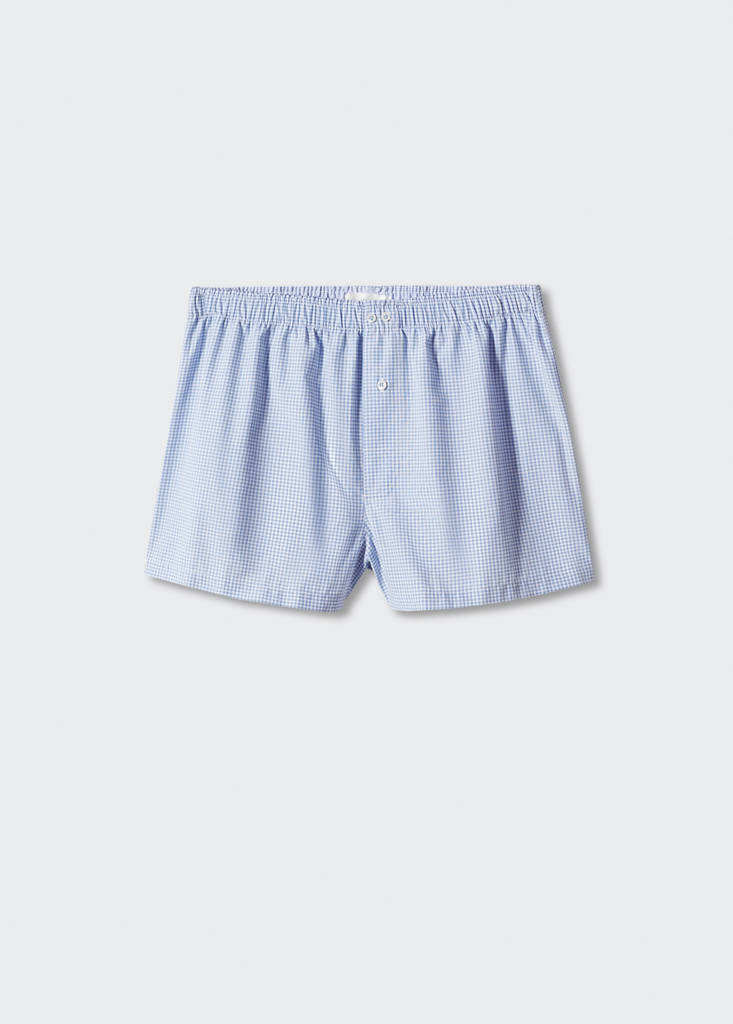 Gingham check cotton briefsPrice historyInitial price struck through [€ 12.99 ]€ 12.99Current price [€ 9.99 ]€ 9.99-23%Select a colourSky BlueSelect your sizeSNot available. I want it!MNot available. I want it!LNot available. I want it!XLNot available. I want it!DimensionsNotify meMicro gingham check print. Boxer type. Elasticated waist. One button fasteningDetails, composition and careStore availability