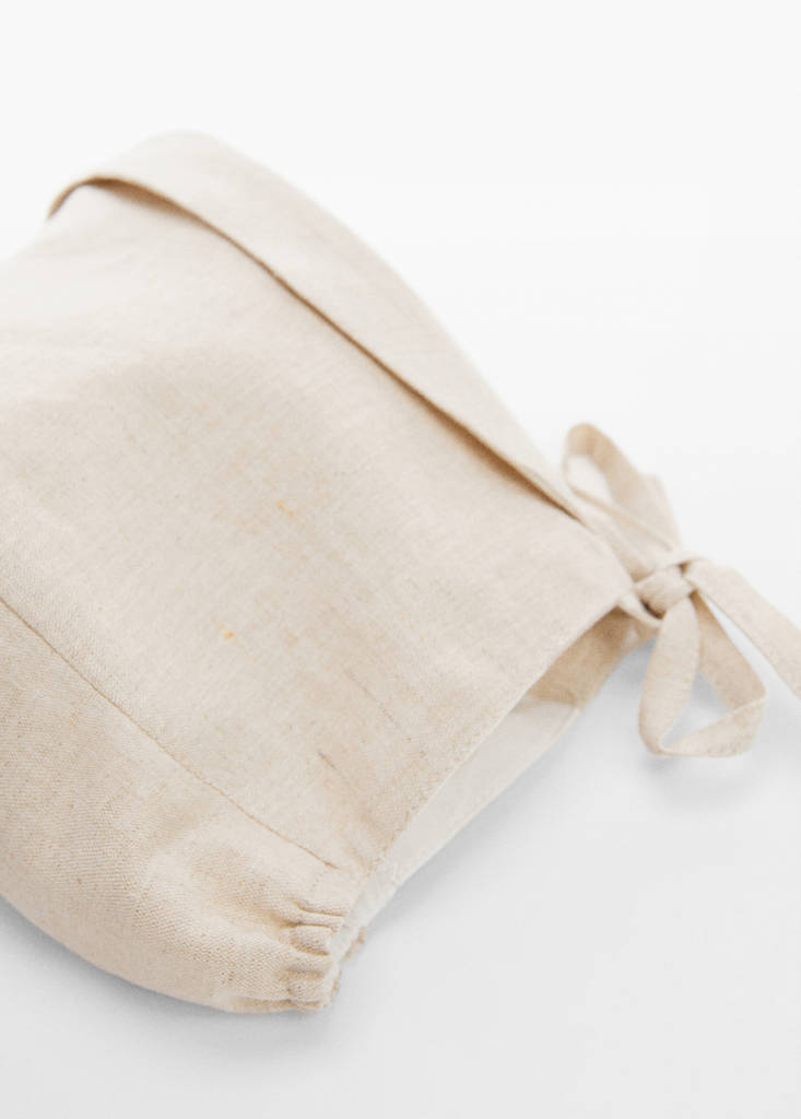 Linen fabric. Fabric with cotton. Adjustable closure. Drawstring closure