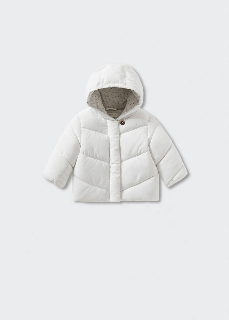 Quilted buttoned coatPrice historyInitial price struck through [€ 27.99 ]€ 27.99Current price [€ 20.99 ]€ 20.99-25%Select a colourOff WhiteSelect your size1-3 months (62cm)Not available. I want it!3-6 months (68cm)Not available. I want it!6-9 months (74cm)Not available. I want it!9-12 months (80cm)Not available. I want it!12-18 months (86cm)Not available. I want it!18-24 months (92cm)Not available. I want it!2-3 years (98cm)Not available. I want it!DimensionsNotify meQuilted design. With filling. Short design. Hood. Long sleeve. Inner liningDetails, composition and careStore availability