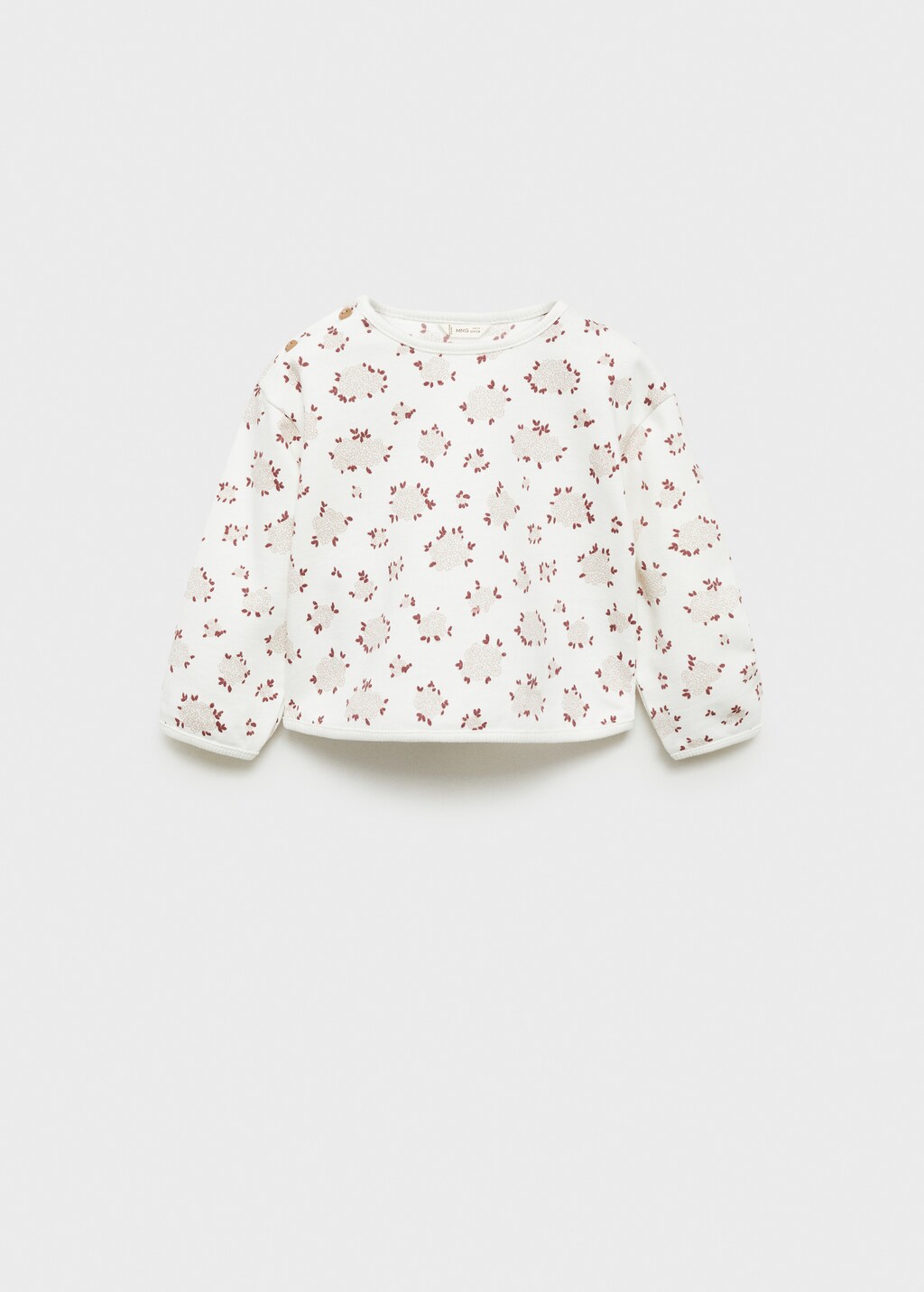 100% Cotton. Floral print. Wood effect buttons. Round neck. Long sleeve. Button fastening on the shoulder.