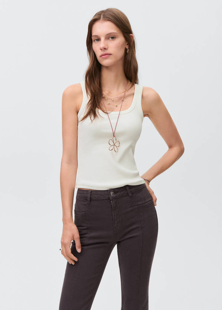 Cotton fabric. Stretch fabric. Ribbed design. Plain design. Straight design. Round neck. Straps