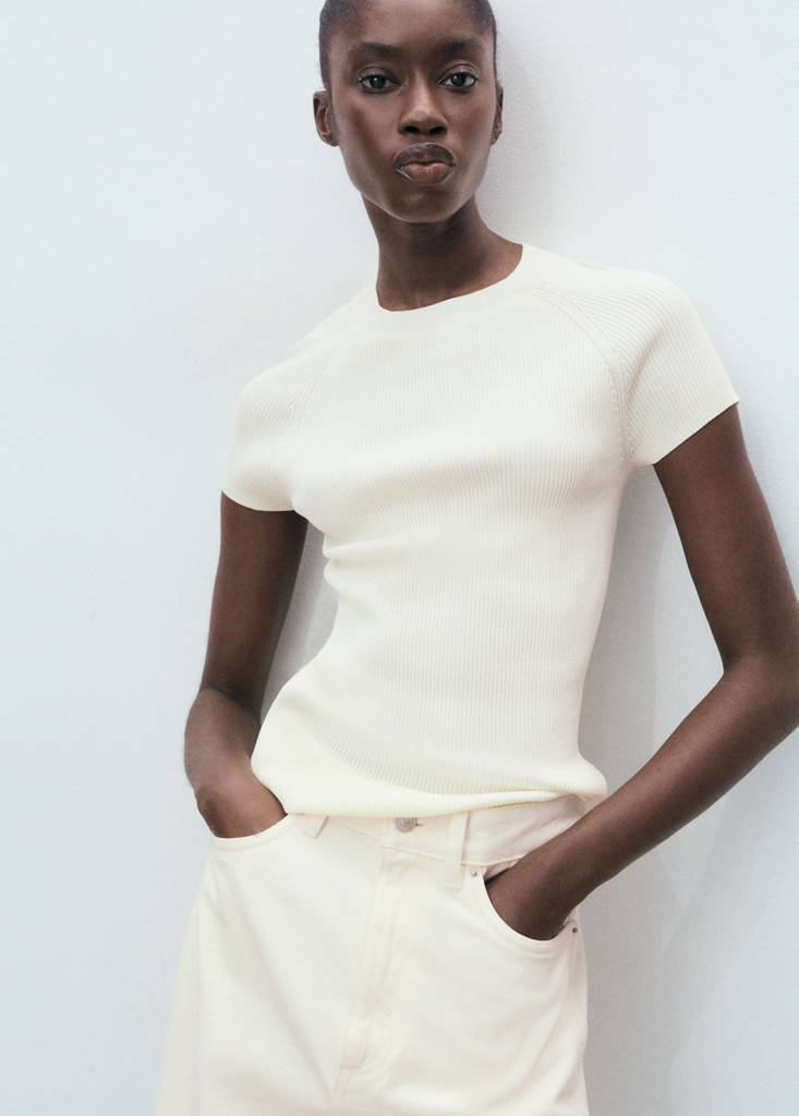 Top seller!Ribbed-knit short-sleeved sweaterPrice historyInitial price struck through [€ 23.99 ]€ 23.99Current price [€ 18.99 ]€ 18.99-21%Select a colourEcruThe model is wearing size S and is 176cm tall.Select your sizeXSSMLXLMeasurementsAddFine knit fabric. Ribbed knit. Straight design. Round neck. Short sleeves. No FasteningDetails, composition and careStore availability