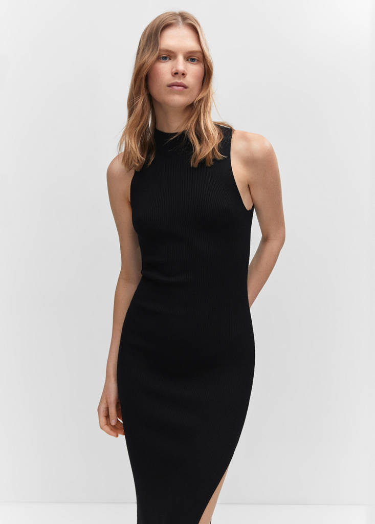 Ribbed knit dress with opening