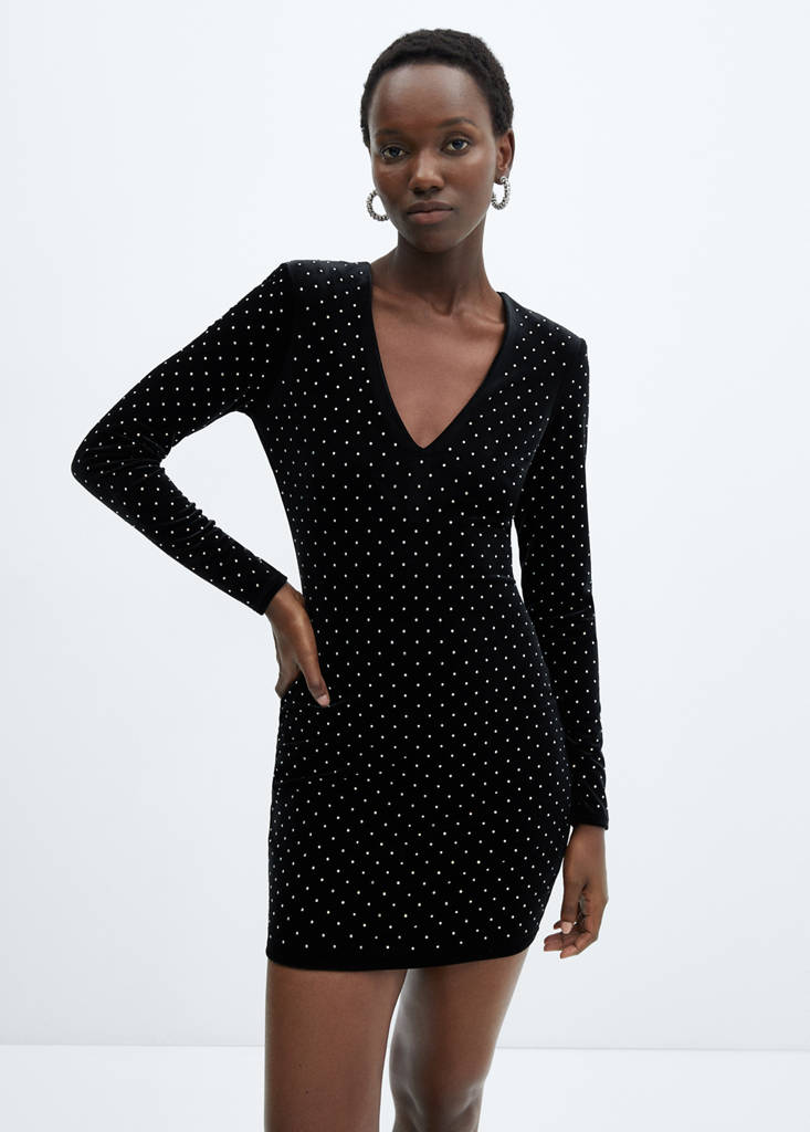 Velvet fabric, short design, fitted design, v-neck, long sleeve, unclosed, rhinestone detail, party and events collection.