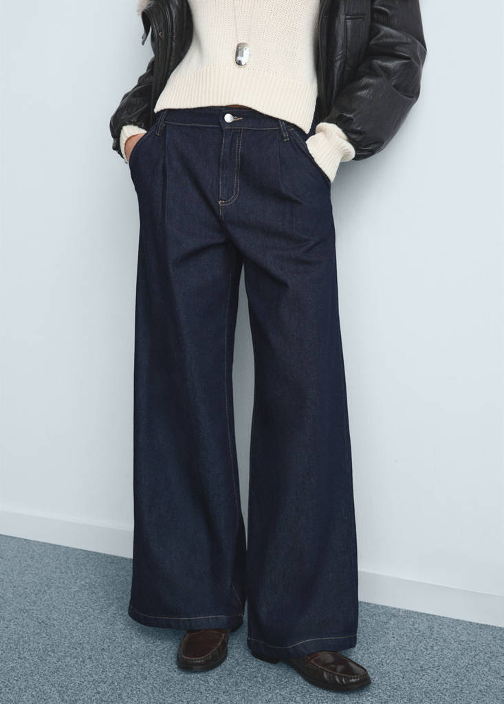 Wide leg pleated jeans