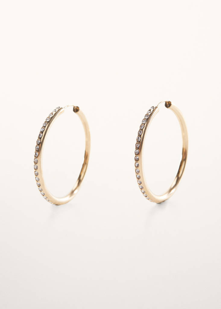 Camille x Mango. Hoop design. Diameter 3.5 cm. Faceted crystal detail. Metallic press stud fastening. Party and events collection