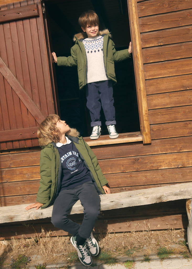 With filling. Straight design. Two side patch pockets. Long sleeves. Hood with synthetic hair detail. Zip fastening. Inner lining