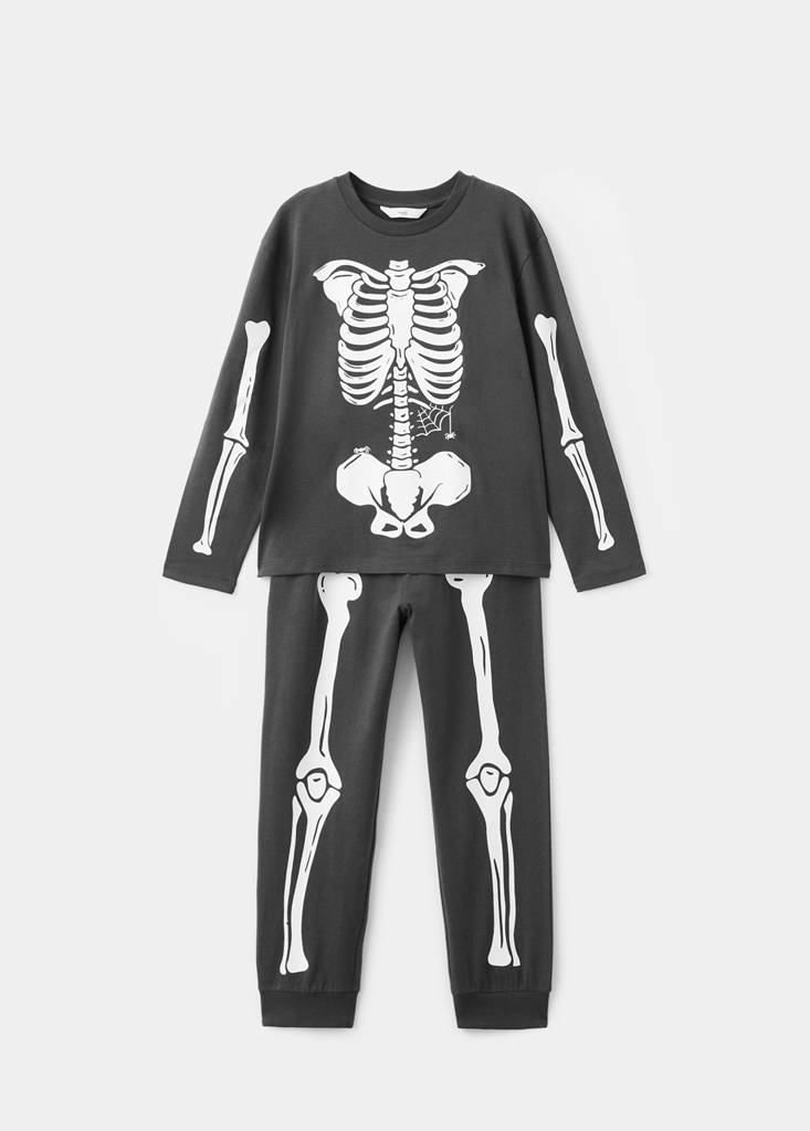 T-shirt and pyjama trousers set. 100% Cotton. Halloween Collection. Skeleton design. Round neck. Long sleeves. Carnival collection