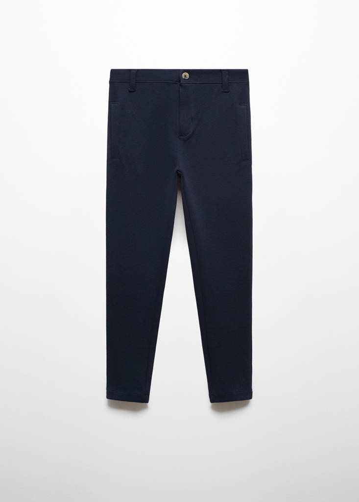 Party, ceremony and communion collection. Straight design. Elasticated waistband. Welt pockets. Two pockets with flaps. Zip and button fastening