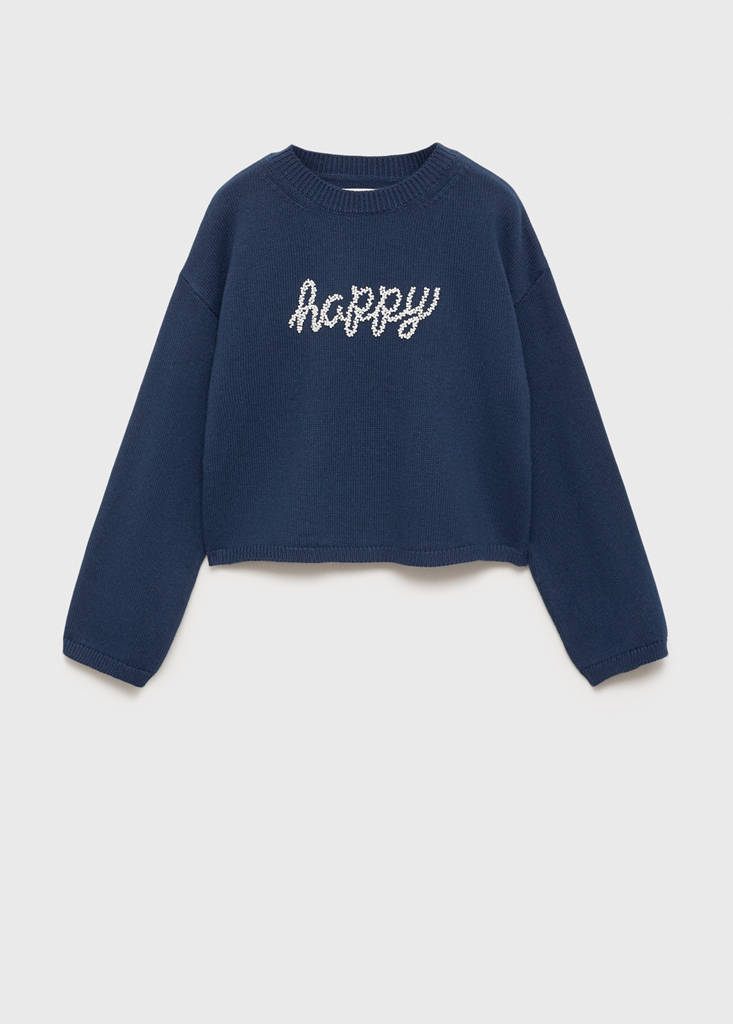 100% Cotton. Embroidered message on the chest. Round neck. Long sleeves. Ribbed collar, cuffs and hem