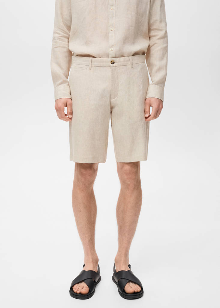 Crafted from 100% linen fabric, this tailored design features a regular waist and a slim-fit cut. It includes belt loops, a double-button fastening and a zip, as well as front and back pockets. With a SMART ETHEREAL theme, the model is 190 cm tall and is wearing a size 42
