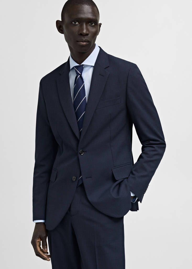 Top seller!Milan slim-fit suit jacketPrice historyInitial price struck through [€ 129,99 ]€ 129,99Second price struck through [€ 102,99 ]€ 102,99Current price [€ 50,99 ]€ 50,99-61%Select a colourDark NavyThe model is wearing size 50 and is 185cm tall.Select your size44464850Not available. I want it!52Not available. I want it!54Not available. I want it!DimensionsAddSlim fit. Notched lapel collar. Chest welt pocket. Two front flap pockets. Buttoned cuffs. Inner liningDetails, composition and careStore availability