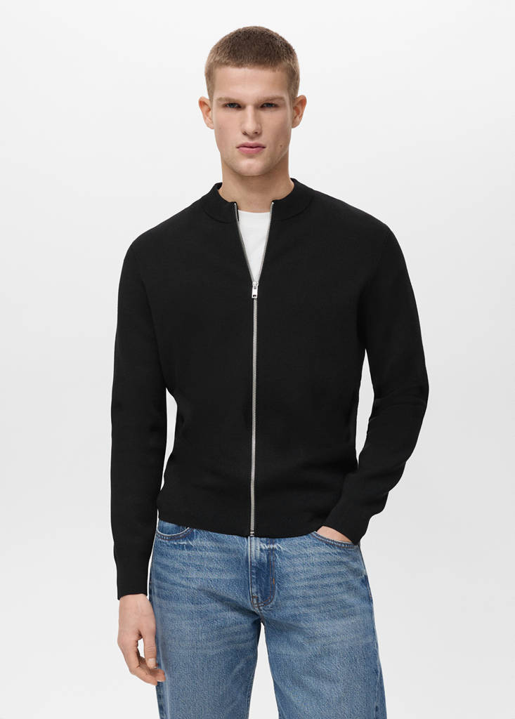 Regular fit. Medium knit fabric. Cable knit collar. Zip fastening on the front section. Long sleeves with elastic cuffs. Straight hem with ribbed ends