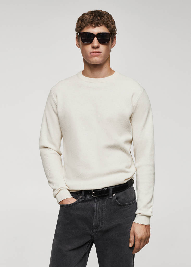 Basics Collection. Cotton blend fabric. Micro check structure. Round neck. Long sleeves. Ribbed finishes. The light blue and grey models are online exclusives