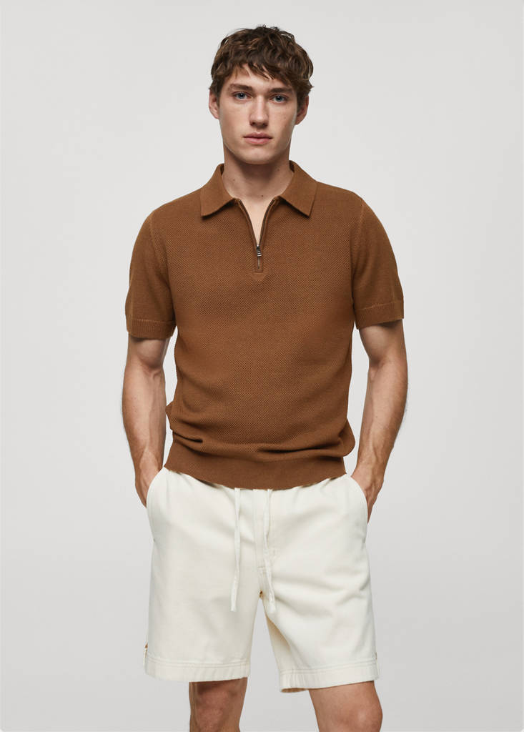 Cotton-knit polo shirt with zipPrice historyInitial price struck through [€ 39,99 ]€ 39,99Current price [€ 30,99 ]€ 30,99-23%Select a colourBrownThe model is wearing size M and is 189cm tall.Select your sizeSNot available. I want it!MNot available. I want it!LNot available. I want it!XLNot available. I want it!XXLNot available. I want it!DimensionsNotify meCotton blend fabric. Fine knit fabric. Polo-neck with zip closure. Short sleeves. Straight hem. Untrimmed hemDetails, composition and careStore availability