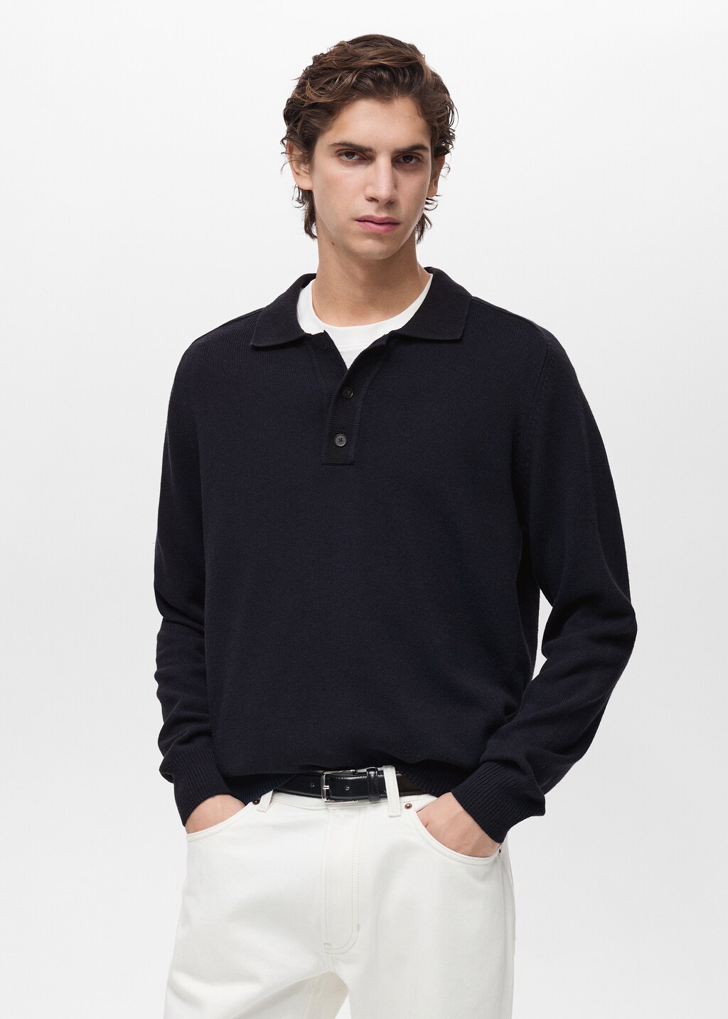 ESSENTIALS: Made to last. Regular fit. Fabric from the Italian supplier CASA DEL FILATO. Cotton blend fabric. Medium knit fabric. Polo-neck with button closure. Long sleeves with elastic cuffs. Straight hem.