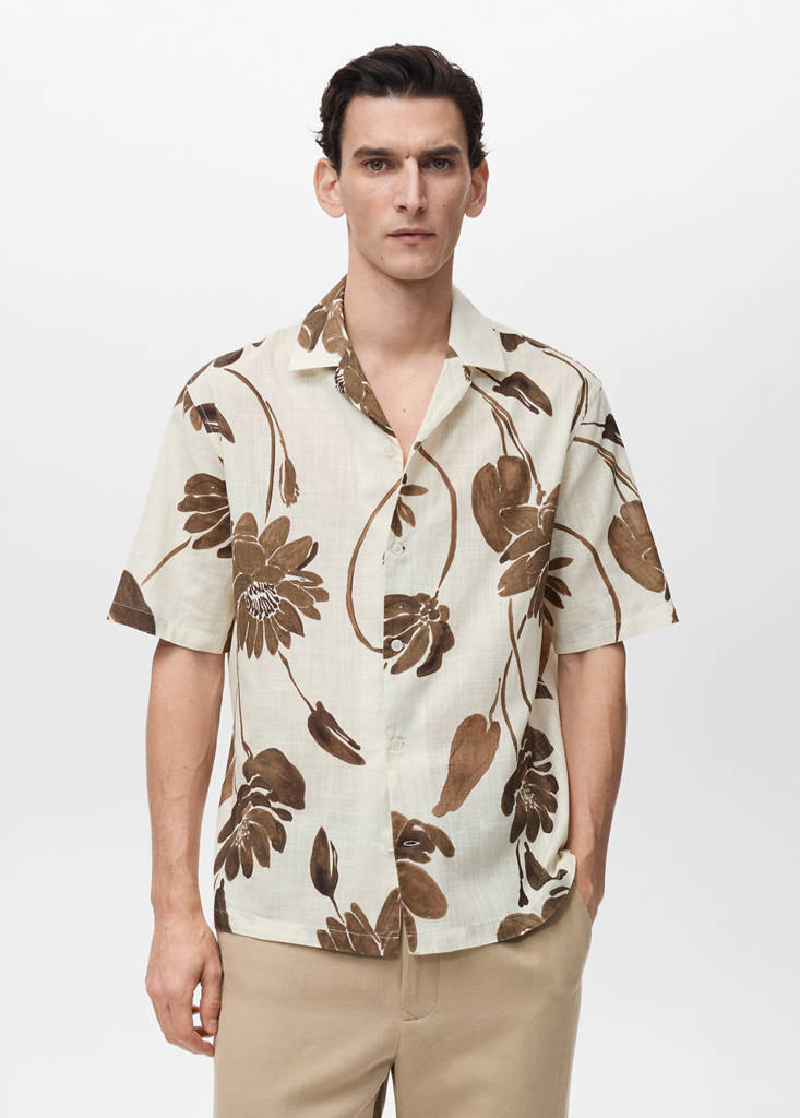100% cotton fabric. Bowling collar. Front closure with buttons. Straight hem with side slits