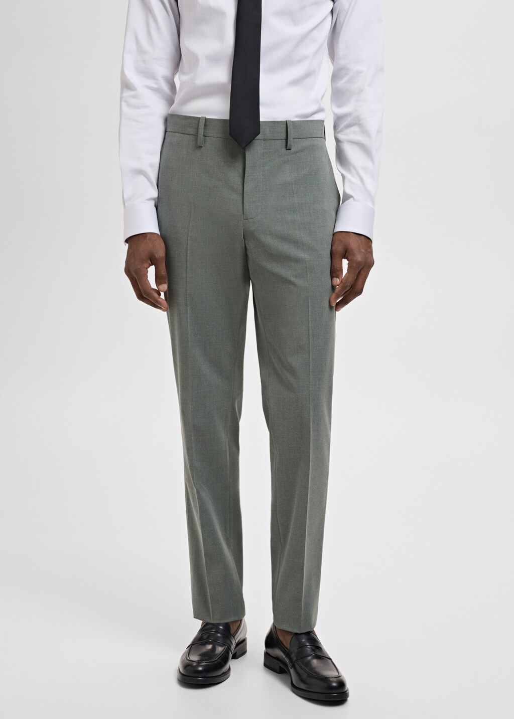 Super slim fit. Comfort Stretch: Stretch fabric for added comfort. Tailoring collection. Belt loops. Front fastening with double-breasted buttons and zip. Two side pockets. Two welt pockets with button at the back. Ironed stripe detail.