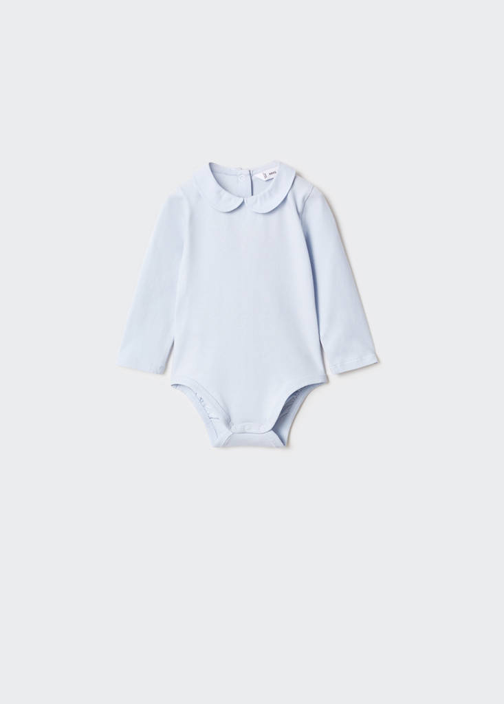 Cotton fabric. Long sleeves. Round neck. Babydoll collar. Button up. Press-stud fastening