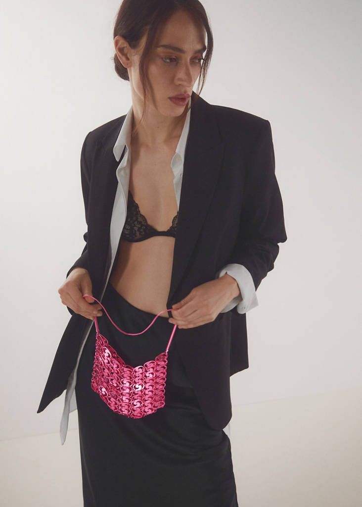 Small metallic bagPrice historyInitial price struck through [€ 69,99 ]€ 69,99Current price [€ 54,99 ]€ 54,99-21%Select a colourFuchsiaSelect your sizeOne sizeNot available. I want it!Notify meSmall. Metallic design. Long detachable chain strap. The pink colour is an online exclusive. Festival Season21.0x16.0x5.0 cm (Length x Height x Width)Details, composition and careStore availability