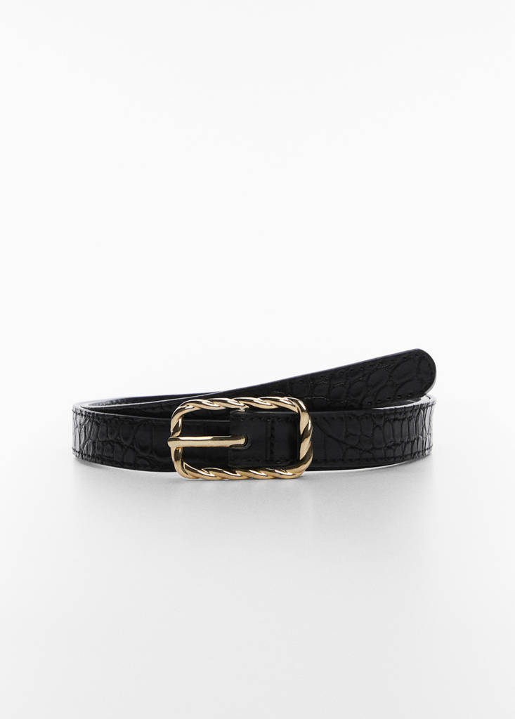 Embossed buckle beltPrice historyInitial price struck through [€ 19,99 ]€ 19,99Current price [€ 12,99 ]€ 12,99-35%Select a colourBlackThe model is wearing size S and is 178cm tall.Select your sizeSNot available. I want it!MNot available. I want it!LNot available. I want it!XLNot available. I want it!DimensionsNotify meCrocodile effect. Slim design. Decorative buckle. Adjustable buckleDetails, composition and careStore availability