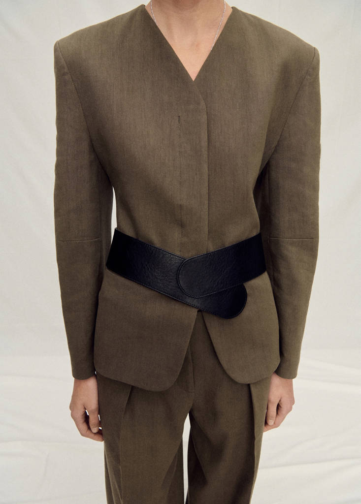 Linen mix. Suit style. Oversized design. V-neck. Long sleeves. Balloon-effect sleeve. Two side welt pockets. Front closure. Back vent at the hem. Total look. Selection Collection